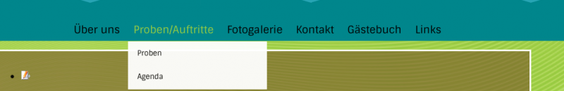 Ich habe kein Menumodul gemacht ich habe alles in meine css Datei geschrieben und dann beim Menueintrag bearbeiten den Übergeordneter Eintrag bearbeitet. siehe Bild. Eigentlich möchte ich nur das wenn ich auf den Menulink Proben/Auftritte gehe ohne diesen anzuklicken, das dropdown menu erscheint. Das tut es aber erst wenn ich auf den link geklickt habe und ich zur Seite Proben gekommen bin. siehe Bilder.
