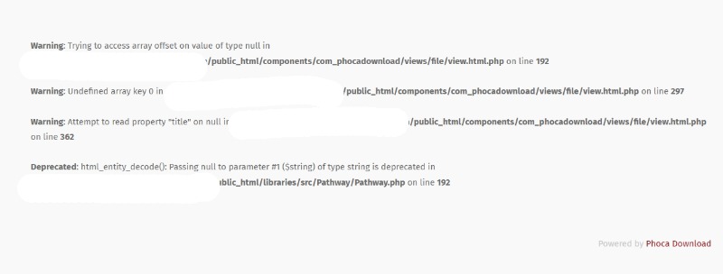 Warning: Trying to access array offset on value of type null in ......../public_html/components/com_phocadownload/views/file/view.html.php on line 189