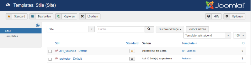 Alle Seiten werden mit dem Template «J51_Valencia» angezeigt.