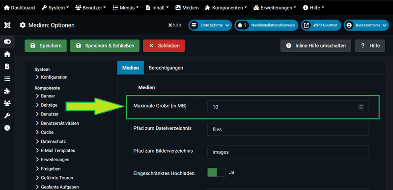 Wo kann man Bei Joomla 5 die Hochladegrösse anpassen?